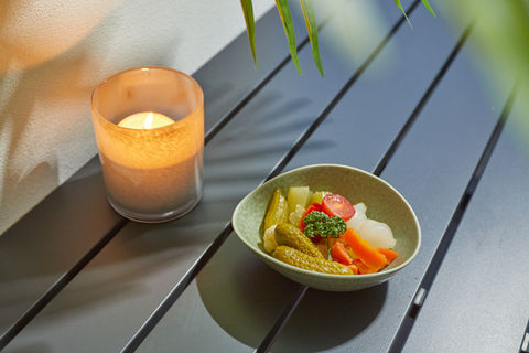 As you step onto the rooftop, you'll be greeted by a lush, verdant garden oasis that provides a serene escape from the hustle and bustle of the city below. With 30 thoughtfully arranged seats, Sky Flame offers an intimate and cozy setting where you can savor your favorite drinks and dishes while surrounded by the beauty of nature.